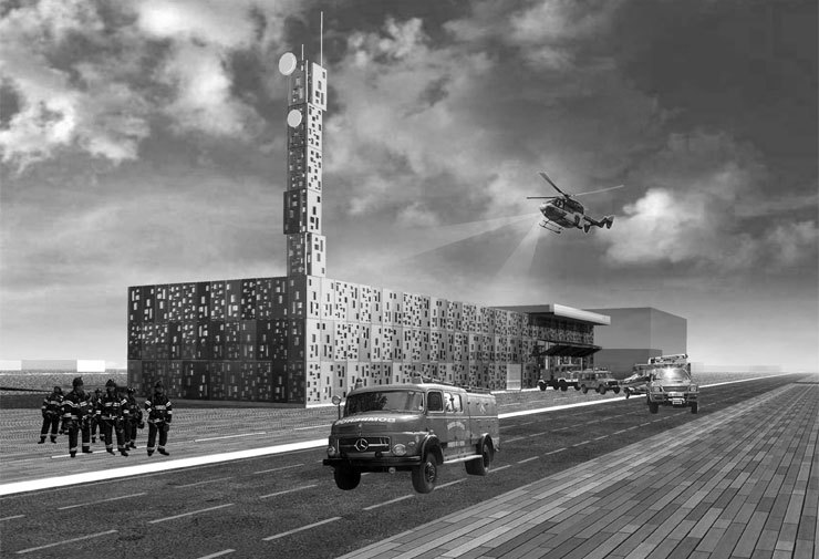 The fiberglass, proposed for the helipad’s structure and the pavement , the communication tower structure and the ventilated facade offer a series of qualities that makes it convenient, such as: high mechanical performance, light weight, easy transformation, 0 maintenance, corrosion resistance, UVA protection, thermal and electrical insulation , sunlight permeability, electromagnetic transparency, plastic possibility of pigmentation, etc.