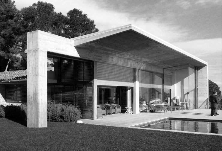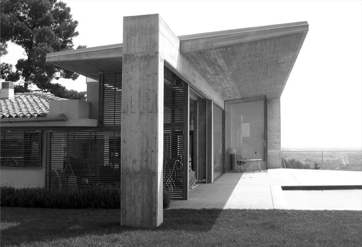 At Villa Joana, few but thought-operations completely change the configuration of both the existing dwelling and its immediate surroundings. A large portico with concrete cantilevered to both sides defines the new facade of the house, changing the traditional image of a opened with large windows to the landscape of Tarragona, view interrupted only by water depth the new pool. To access the existing sequence of parterres is replaced by straight lines and strong reinforced concrete house the existing ramps to gain height. The concrete walls extend existing contact with the pavement. The rugged topography of the area can give the house character and distinctive at the same time allows users to enjoy the view of the distant Reus landscape.