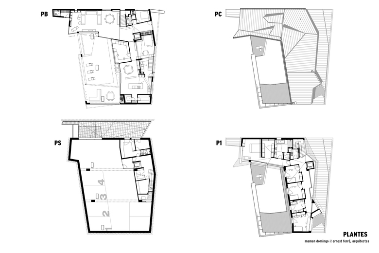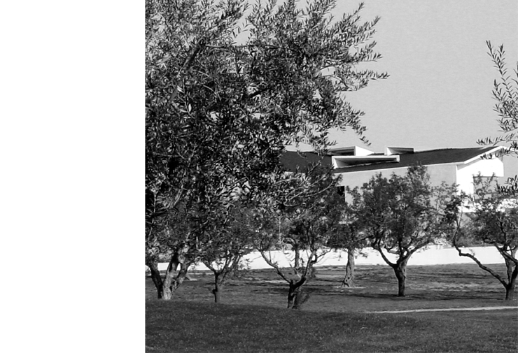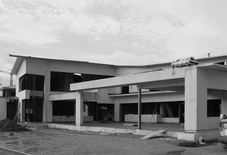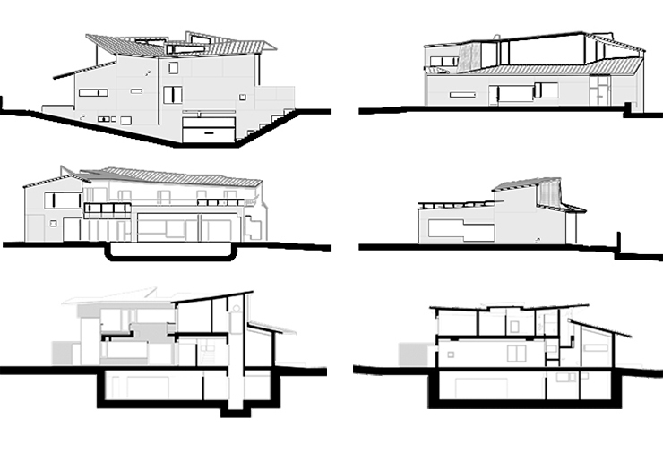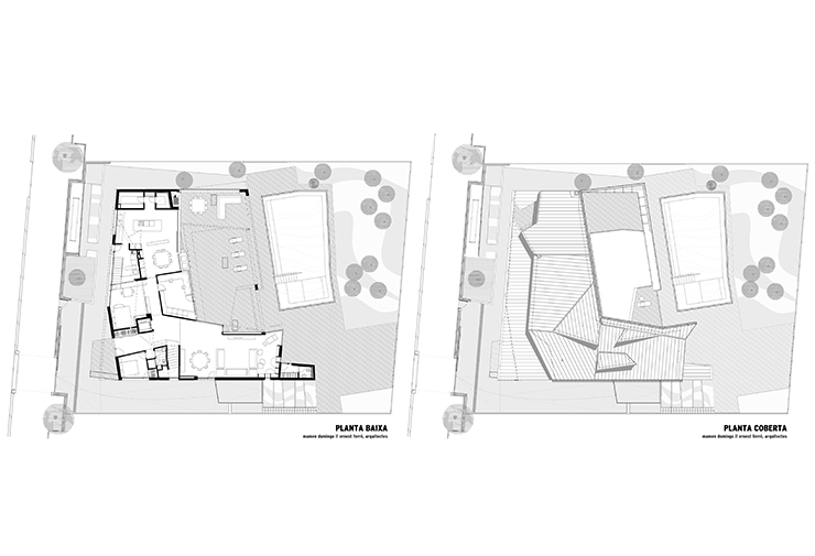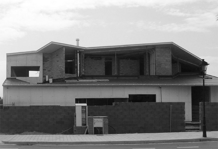 The game of sloping plans of the roof covers the rooms of the house, that are arranged in a "U" in the ground floor and in a "L" in the first, they are opened into the central courtyard through large glazed openings that make a diluted boundary between interior and exterior. The entries of light through the roof plans pierce both floors through internal slits that connect the circulation areas. The exterior of white concrete, makes a honest house, without stridencies or unnecessary ornamentation, leaving the maximum role to the configuration of space and the adequacy of the immediate surroundings.