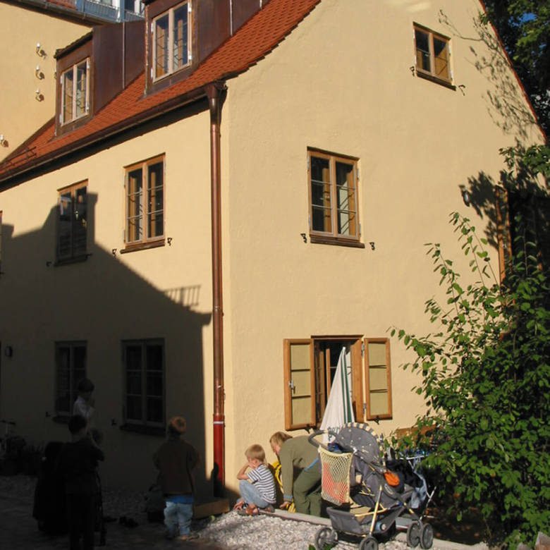 Small and subtle, that’s what it was supposed to be. The unimpressive annex of the building is called K20 and listed, since it was built around 1800 in Haidhausen as one of the oldest hostels. It could only be enlarged downwards and had to be completely restored.