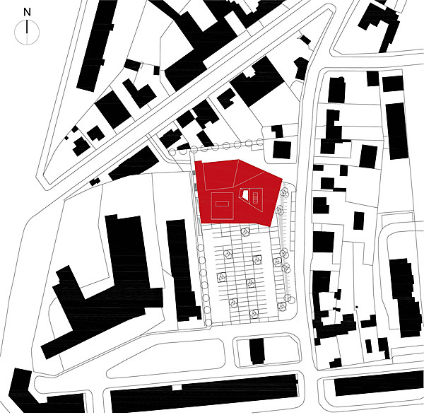 The former Joué-lès-Tours youth centre was a blocky, opaque, inward-looking building that failed to interact with the adjacent public space and no longer met current standards and requirements. The architectural concept for the new music facility responds to a three-fold objective: to open the building towards its surroundings; to improve the way it integrates with the existing buildings, and to emphasize the festive dimension of the facility by making a unique architectural statement. Having chosen to build the new concert venue exactly where the old one stood, we reinterpreted some of the latter’s salient features – such as its prow-shaped auditorium – while offering a radically new image of a building open towards the street. Generously glazed street-side entrance, deep projecting eaves and a strongly cantilevered auditorium create both an impression of lightness and a welcoming feel. To improve contextual integration, we have divided the structure into two parts functioning in different registers: the resolutely horizontal 2.50-meter tall concrete and glass base contains a fluid, open interior space, while the opaque white roof integrates three main components of the design brief – two performance halls and the resource center – that seem to burst through the horizontal surface. This duality is emphasized by the use of contrasting materials: hard on the inside (raw concrete, glass, stainless steel) and soft on the outside (membrane stretched over exterior insulation layer). With its complex volumetrics and textured outer surface, the new building stands out in the urban landscape. The contradictory image we were aiming at is one of a unique yet familiar object that is challenging yet invites appropriation: a sculptural design that refers to nothing that already exists, but which users can easily engage with, both in functional and symbolic terms.