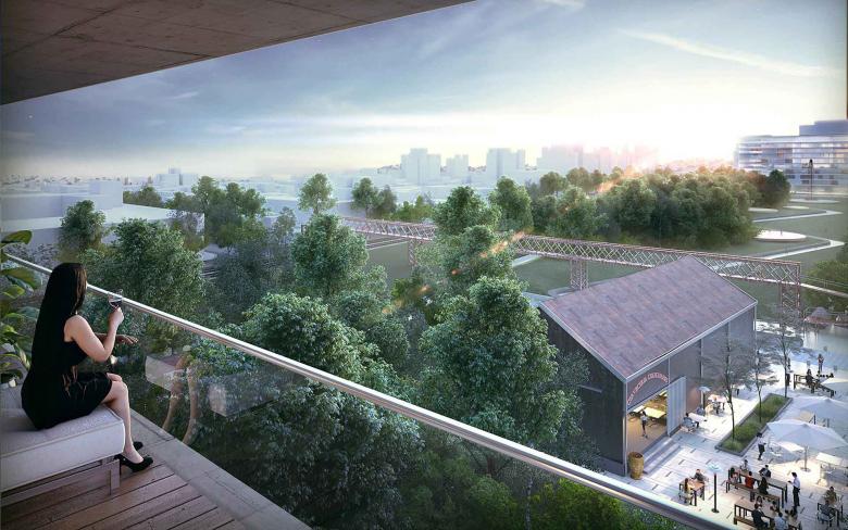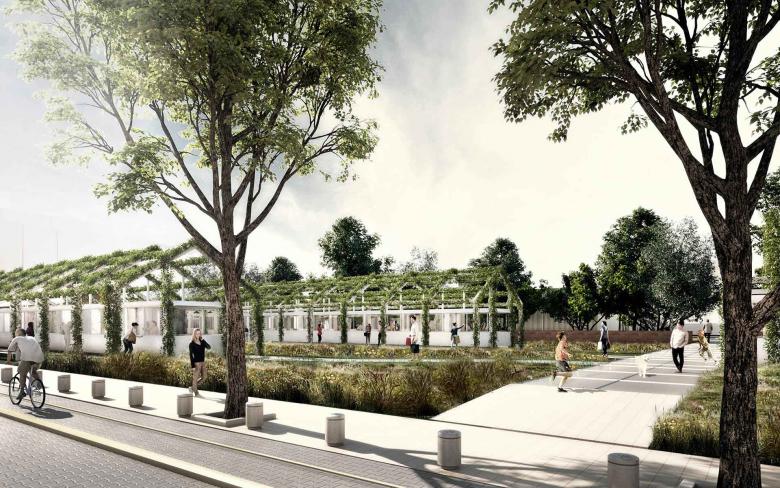 The project won the First Prize in the National Ideas Competition unanimously by the jury. The proposal selected among 47 participants was the only one that made a counterintuitive proposal, placing the buildings perpendicular to the tracks, minimizing the impact on the neighbors and maximizing sale prices of the new units. All this improving the requested metrics and bringing public space from 65% to 78%.