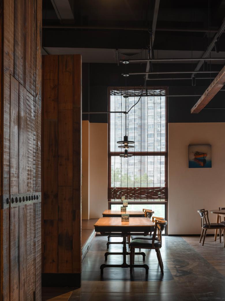 The ‘pier into the sea’ takes its meaning from the distribution place where the river enters the sea, which is a critical place where people, objects and emotions meet. Instead of reproducing the imagery of ‘seafood’ and “wharf” in a symbolic way, the design extracts the spiritual characteristics of the space, and takes ‘openness, enclosure, aggregation and flow’ as the organisational logic to build a space with a sense of wood rhythm and stone texture in a limited space. Instead, it extracts the spiritual characteristics of the space, taking ‘openness, enclosure, gathering and flow’ as the organising logic, and builds an urban fishing harbour with a sense of rhythm of wooden structure and stone texture in limited space. The design tries to build a daily residence with a sense of ‘docking’ in the urban neighbourhood, so that seafood dining can return to the freshness of food itself and the temperature of social instinct. In a series of construction strategies such as material, scale, light and interface, the designers emphasise the generation of a sense of place and respond to the disappearing “public eating space” in urban life.