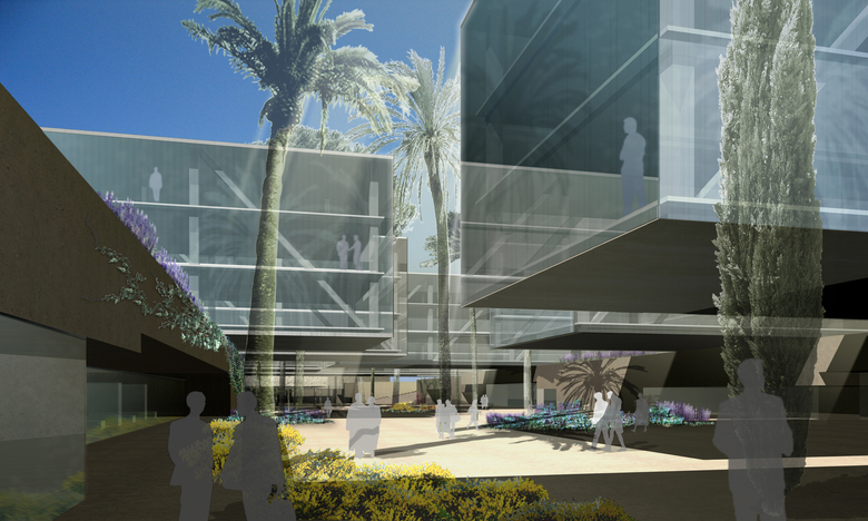 The plan for the new Health science campus of Granada foresees the construction of four faculties (Medicine, Pharmacy, Medical Sciences, Dentistry) and a building for the General Services.