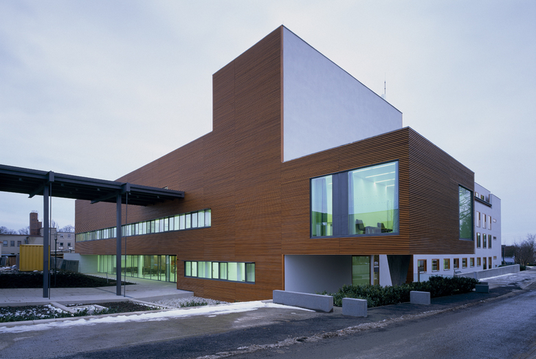 This hospital is located in Falkenberg, a district in the suburbs of Berlin. The project had to fit into the dense urban space, on the one hand, and the natural landscape, on the other. The extension of the hospital, in the form of a horizontal volume, contrasts with the less dense and more dispersed buildings proposed for the modules of the new psychiatric section; these patio houses are based on community-dwelling models.