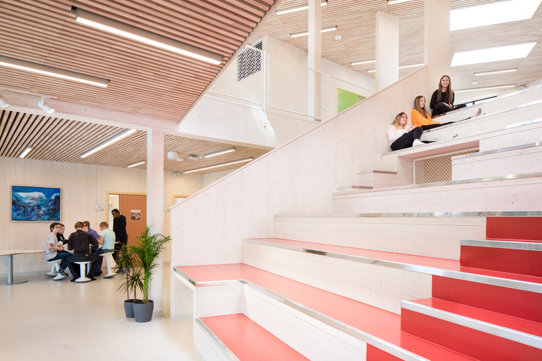 Ein Bewerbungsverfahren brachte ein Siegerprojekt hervor, das in Kooperation mit den norwegischen Architekten Helen & Hard entstand. Österreichisch-internationale Schulbau-Expertise und skandinavische Holzbau-Expertise gingen hier eine erfolgreiche Fusion ein. Dabei wurde keineswegs ein Standardentwurf einfach kopiert, sondern eine von uns über Jahre entwickelte Raumstruktur mit dem Cluster-System kombiniert: Ein polygonaler zentraler Raum, um den kleinere Räume quasi rotieren - eine geometrische, räumliche, soziokulturelle und ökonomische Antwort für die Clusterschule.