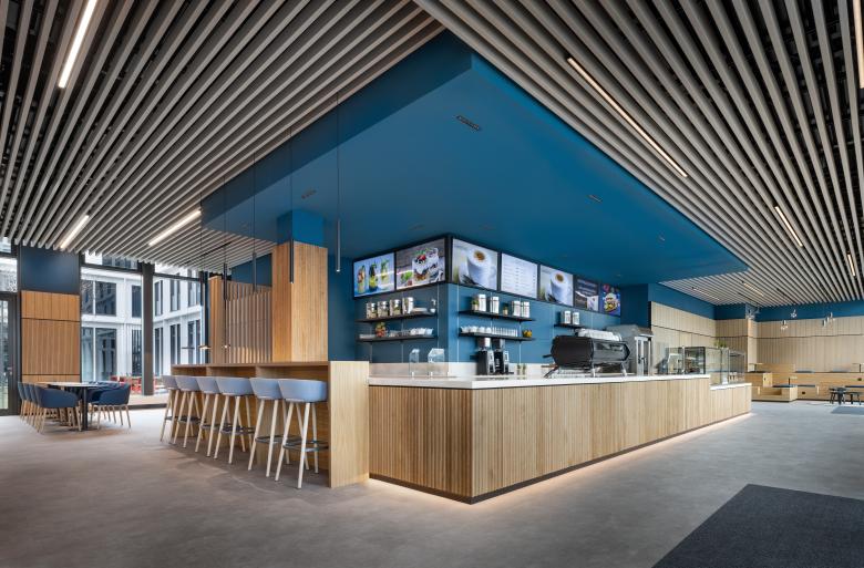 The new bistro in Berliner Sparkasse’s headquarters is a prime example of a future working environment where superior architectural quality meets sustainable responsibility and social commitment.