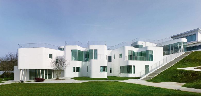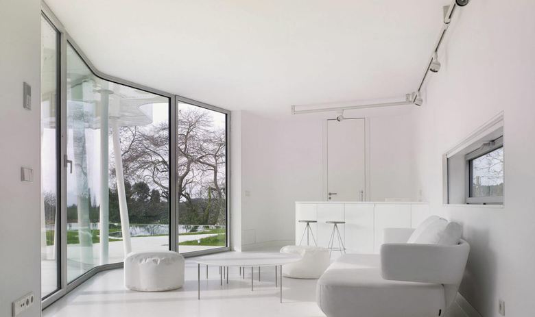 Los interiores brillan con una blancura casi deslumbrante, mientras que las paredes y escaleras curvas le dan a la Casa V un carácter casi de museo.