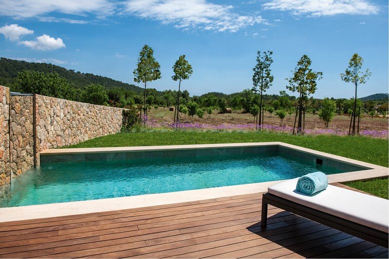 Lejos de los grandes centros turísticos de Mallorca, en medio de la naturaleza, se encuentra el Castell Son Claret. Este conjunto arquitectónico, compuesto por una casa principal que recuerda a un castillo y ocho edificios secundarios y establos, se remonta al siglo XVIII. La antaño residencia de Don Gabriel Claret fue adquirida en el año 2010 por un multimillonario alemán de la logística que la reformó lujosamente. En la actualidad, los huéspedes que necesiten descansar tienen a su disposición 38 habitaciones, una piscina de agua natural y una finca de 132 hectáreas de extensión.