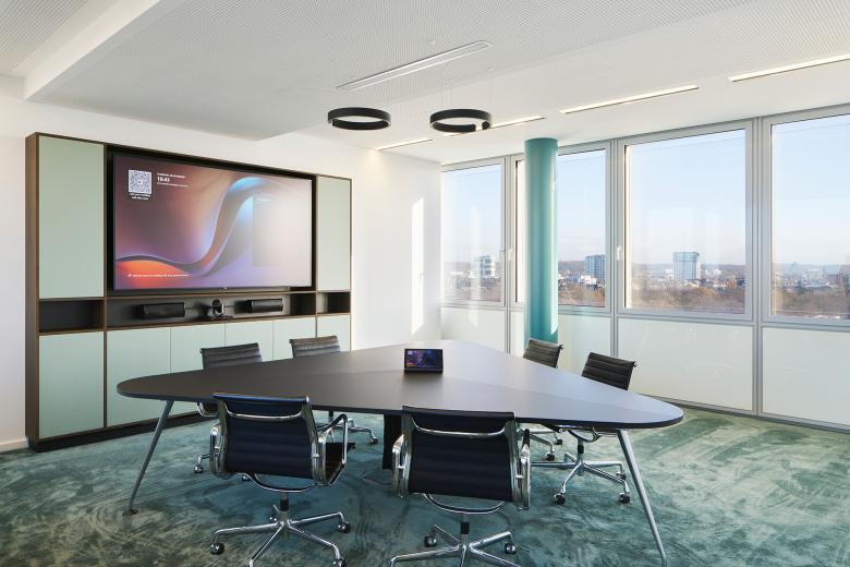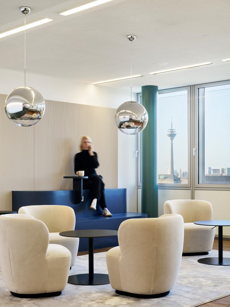CSMM entwickelte für Hogan Lovells ein maßgeschneidertes Raumkonzept über zehn Etagen des denkmalgeschützten Dreischeibenhauses in Düsseldorf. Die Büroflächen wurden durch eine interne Treppe verbunden und durch großzügige Community Spaces auf jeder zweiten Etage ergänzt, um die Kommunikation und den Austausch zwischen den Mitarbeitenden zu fördern. Eine besondere Herausforderung stellte der Denkmalschutz dar, der kreative Lösungen für Farbgestaltung, Beleuchtung und statische Eingriffe erforderte, insbesondere bei der Verbindung der Geschosse 22 und 23. Das Farb-, Licht- und Materialkonzept integriert den Bestand sensibel und schafft gleichzeitig eine moderne, repräsentative Arbeitsumgebung für die Kanzlei. Mit lichtdurchfluteten Räumen, einer klaren architektonischen Sprache und einer Dachterrasse mit Blick über Düsseldorf entstand eine Arbeitswelt, die höchste funktionale und ästhetische Ansprüche erfüllt.