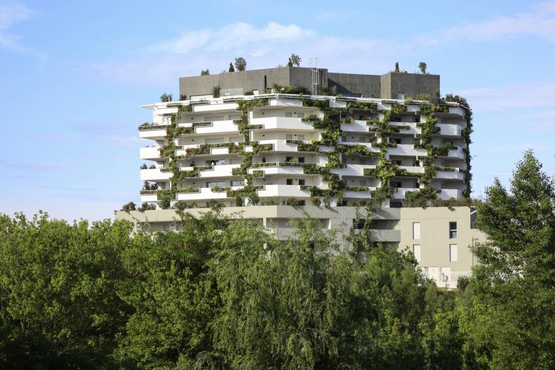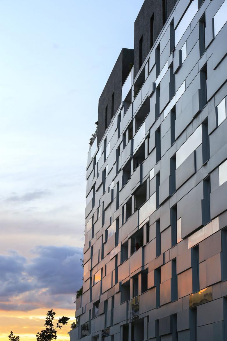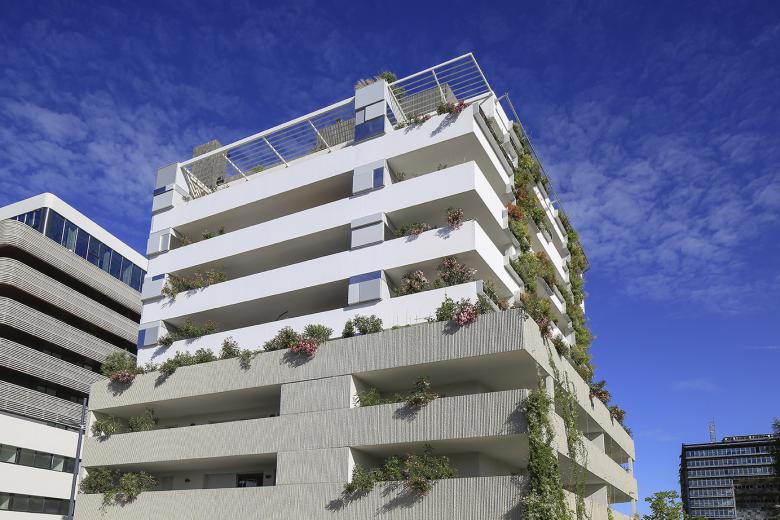 The housing building "I-Park" facing the new town hall of Montpellier, is a building of eight levels in variable layers designed by NBJ Architectes, developed through a process of dialogue with the city of Montpellier, the equipment company of the Montpelliéraine region, Jean Nouvel, chief architect of the ZAC, and the promoter Pragma.