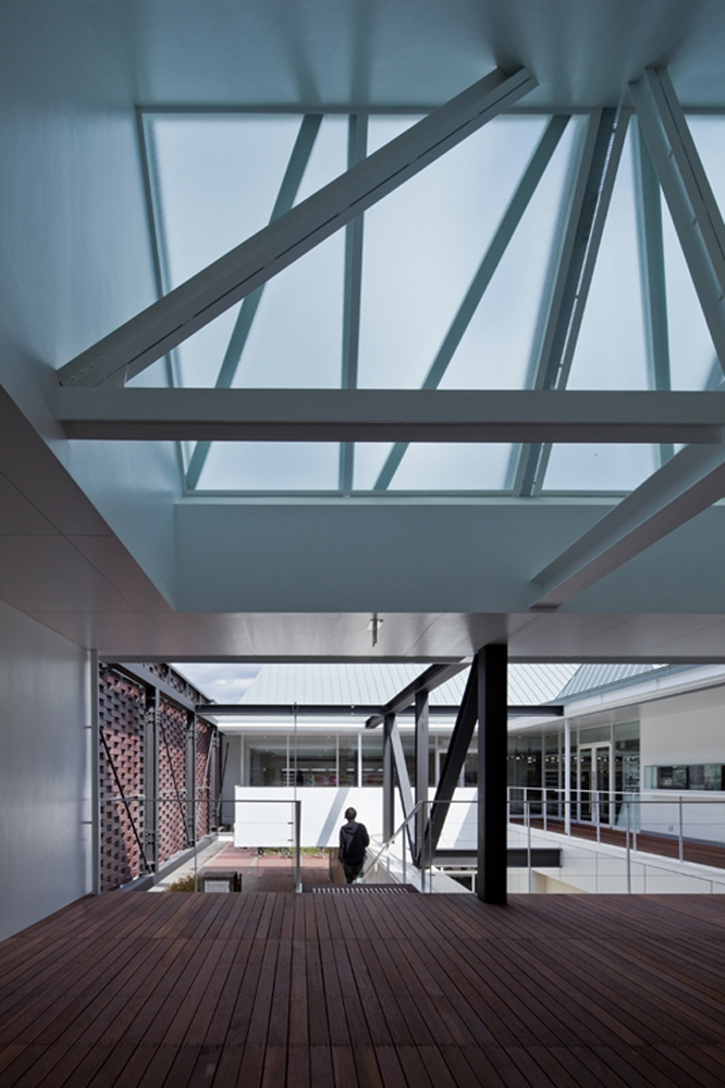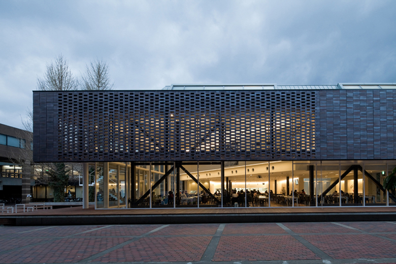 This is a project for a student union hall located in the middle of the campus of Kyoto Institute of Technology, a university which has a more than 70 year history. The building is to have a cafeteria on the first floor and a bookstore as well as a convenience store on the second floor.