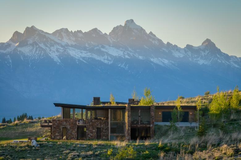 The Western character of the project speaks to a rugged beauty of the area. Natural stone, weathered wood, and rusted metal combine with sod roofs to pay homage to the old "Soddy Cabins" of the late 1800s frontier settlements with a contemporary interpretation. While the shed roofs reference vernacular ranch buildings common in the area, nodding to a tradition that continues to define the region.