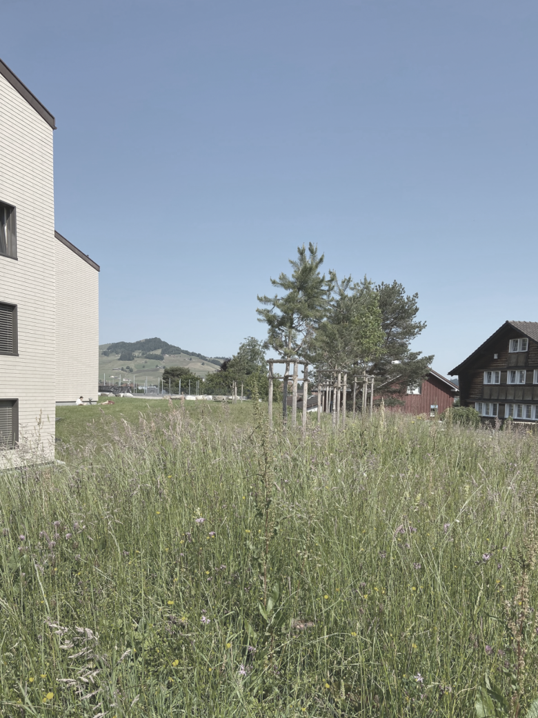 Innerhalb des Areals wurden grossflächige und unterhaltsintensive Rasenflächen in naturnahe Wiesenflächen ‘umgewandelt’ welche zusätzlich mit standortgerechten Wildgehölze und Hochstammbäumen ergänzt wurden. Der Lebensraum für Flora und Fauna konnte massiv aufgewertet und der Gartenunterhalt vermindert werden.