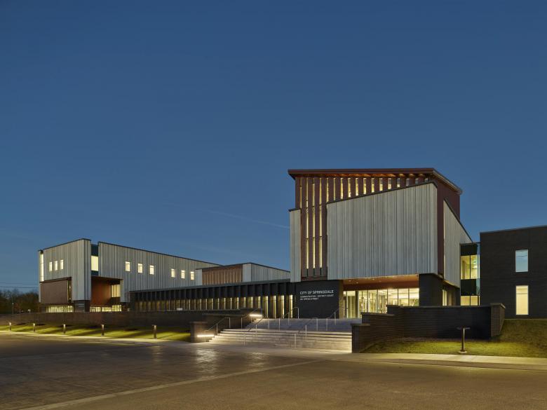 Springdale is the fourth largest city in the state located between Bentonville and Fayetteville in northwest Arkansas. Between 1990 and 2010, it experienced a 133% growth in population. Designed to meet the growth for the next 20 years, the new 122,481-square-foot municipal complex houses a state-of-the-art police facility and a district court and includes partial renovation of the existing city administration building.