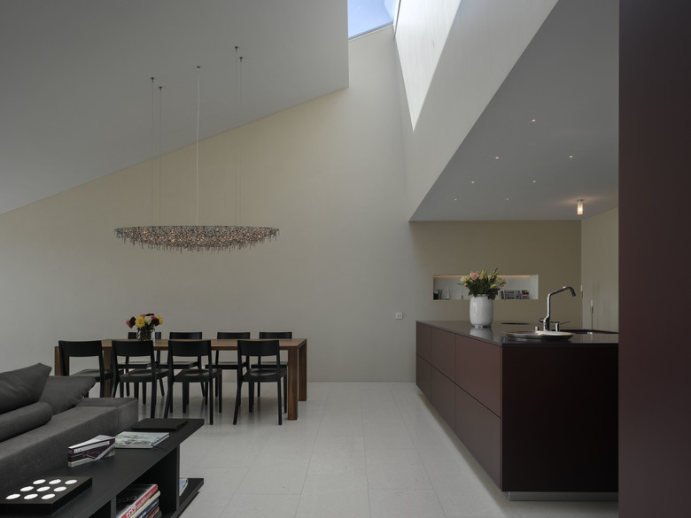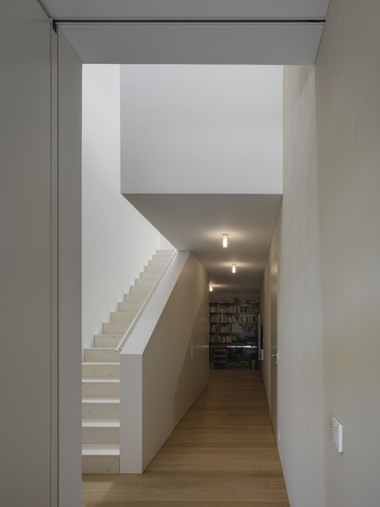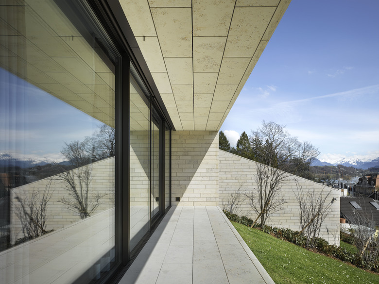 Die vier zweigeschossigen Stadtvillen liegen an bester innerstädtischer Lage, mit Blick auf See und Berge. Die verwilderte Freifläche im Garten eines klassizistischen Bürgerhauses konnte zur städtebaulichen Nachverdichtung genutzt werden. Die Baukörper folgen in ihrer Ausrichtung abwechselnd der hang- und seeseitig angrenzenden Bebauung. Sie fügen sich in die Hangneigung ein und sind in Lage und Höhe zueinander versetzt angeordnet. Für die wertige Gebäudehülle aus massivem Mauerwerk wurde gelber Jurakalkstein verwendet. Grosse Einschnitte für Terrassen und Loggien bringen viel Licht in die Häuser. Durch das geneigte Dach und die Wegeführung entstehen spannende Räume und Raumfolgen. Zusammen mit der gewählten Materialisierung, den sorgfältig proportionierten Räumen und den grosszügigen Raumhöhen werden die Stadtvillen ihrem Namen auch im Inneren gerecht.