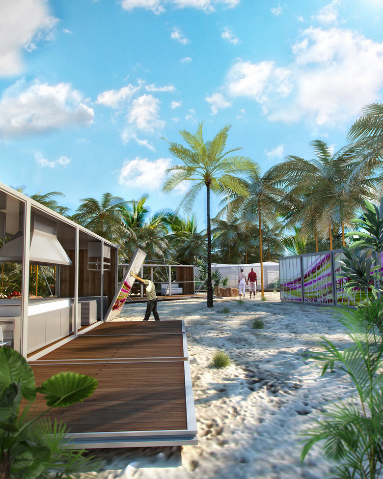 The client, who has three hotels in the area, established for Tribal some important challenges. On the one hand, a hotel absolutely sustainable and responsible with the surrounding environment; on the other hand it should be possible to dismantle the hotel in no more than six hours. Detach the hotel and move it in a short period of time can avoid being hit by a hurricane, also allows the hotel to relocate in another area as it did the Mayas, respecting the environment [they cut the rain-forest once, and when the rain-forest claimed its place growing over the crops, the old Mayans would move to a new place to start over again].