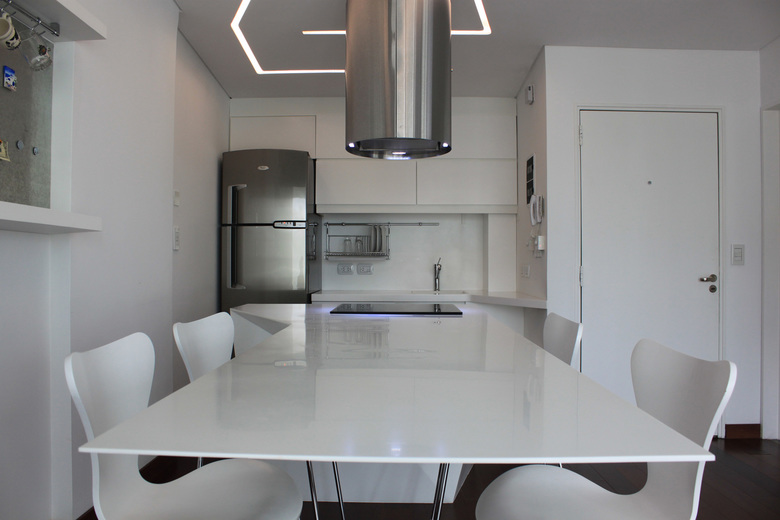The apartment is located at the top 3 floors of a building in front of a park. Najmias Office for Architecture [NOA] was commissioned the renovation of the kitchen and dinning space maximizing the space and the meager area for the lower plan.