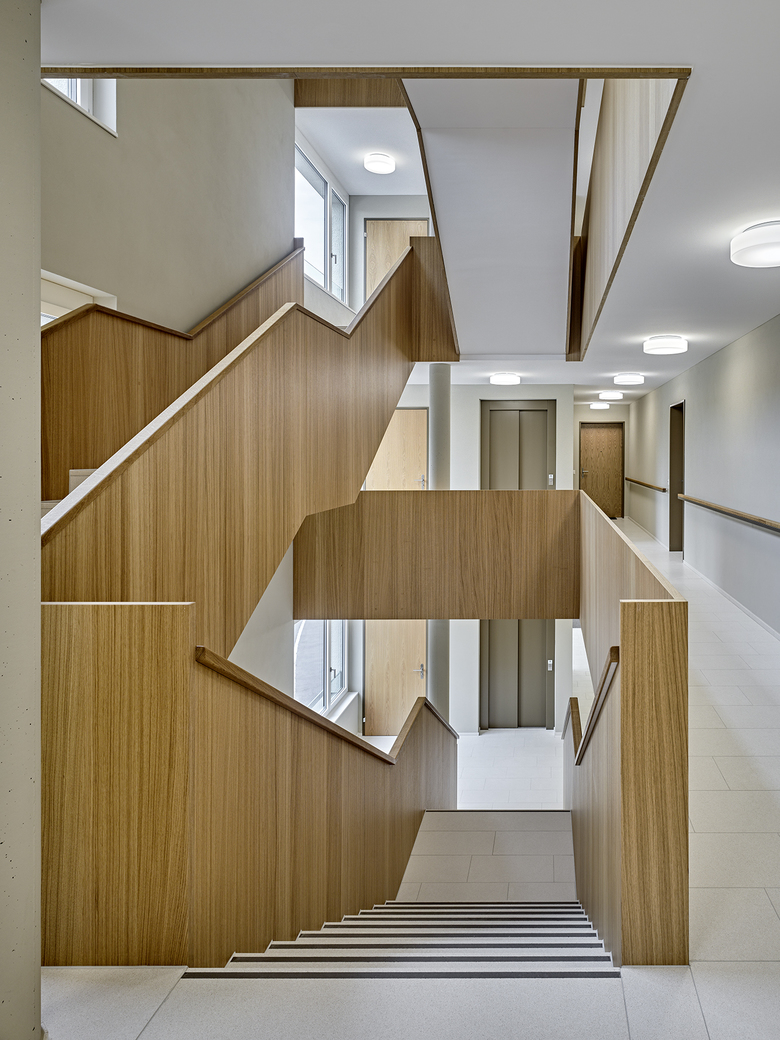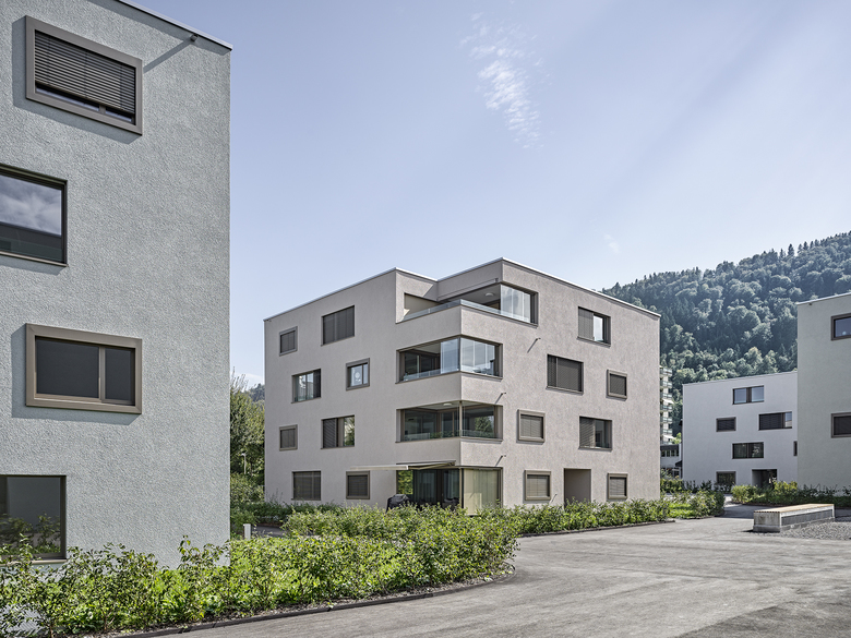Das städtebauliche Muster der neuen Anlage verbindet die gewachsene Einzelbauweise des alten Dorfkerns mit den grossmassstäblichen Volumen der nahen Umgebung. Durch die versetzte Anordnung der Baukörper werden die unterschiedlichen Bebauungsmuster miteinander verwoben. So entstehenden Aussenräume, die differenzierte Qualitäten bezüglich Orientierung und Nutzung aufweisen. Das Langhaus mit altersgerechten Kleinwohnungen bildet den Abschluss zum neu geschaffenen Dorfplatz. Die Baukörper mit gedeckten Eingangsbereichen, Balkonloggien und der Nutzung entsprechenden Fensteröffnungen prägen den architektonischen Ausdruck des Ensembles. Feine farbliche Abstufungen der einzelnen Baukörper schaffen eine sinnliche Differenzierung.