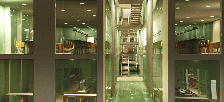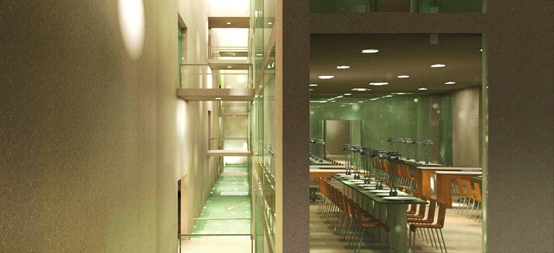 This is being translated into a design concept as “buildings within a building" that are inter and intra linked ; visually and physically with bridges, corridors, ramps and stairs. The routing of all these movement paths negotiates the security and access. The areas housing services and movements of people act as naturally lit and ventilated layers to the artificially lit and cooled main spaces. They are interspersed with tall shafts that divide them into long and narrow flexible modules. The shafts would act as wind catchers and light reflectors that are washed with indirect north light and flooded with channelised southern breeze. This would yield the desired work environs while reducing the load on artificial lighting and cooling.