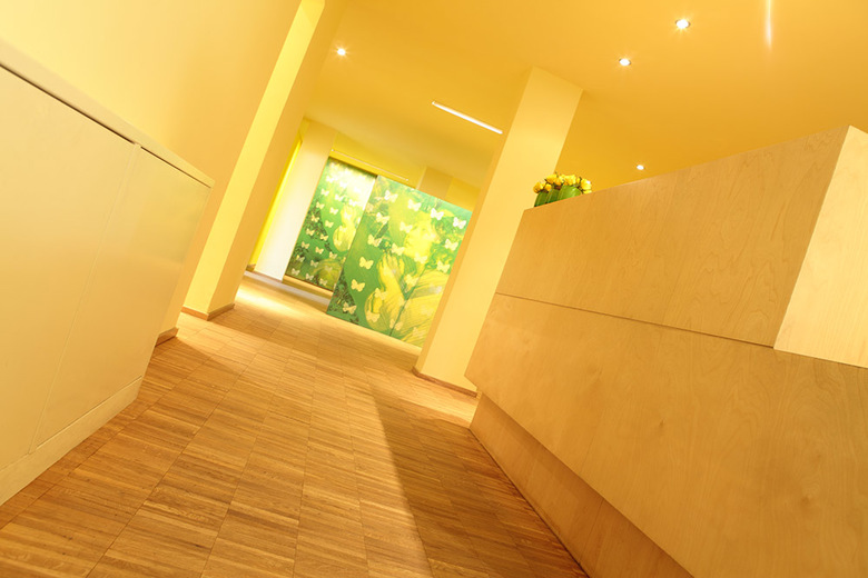 A visit to the doctor can be fun – proven by this expanded children’s surgery in Düsseldorf. Cheerful green and yellow, combined with the light wood tone of maple furniture and warm, softly light creates a special atmosphere, that gives children security and also stimulates their imagination. Unique element in the designed rooms is the large-scale motif of the butterfly children on wall and wardrobe units. Guiding principle in transforming the surgery was to see the world with children eyes. The interior design concept provides lightness, playfulness and cheerfulness. The rooms are designed as if casted in one piece, whereby the custom made furniture produces a variety of spatial references. It has succeeded in giving children and parents a unique spherical experience. Sterile walls with decorative hpl were brought back to life – then even doctor visits can be fun.