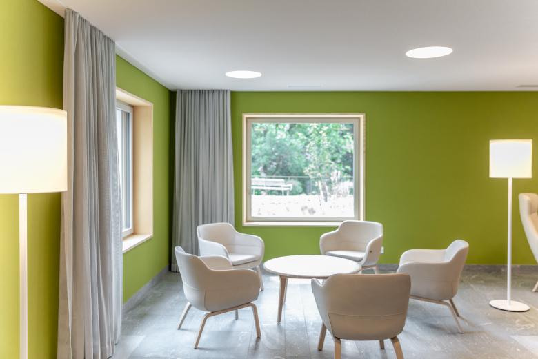 Die Wohngruppen sind als separate und geschützte oder auch als offen miteinander verbundene Einheiten, je nach den aktuellen betrieblichen Bedürfnissen, betreibbar.