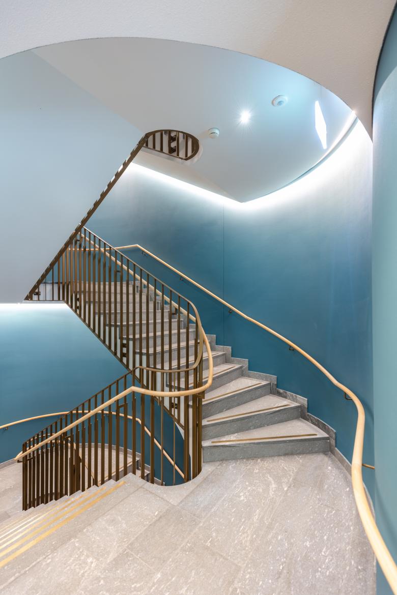 Das bestehende Konzept des Bestandsgebäudes als Zweispänner wird weitergeführt. Der Neubau bindet sich direkt an den Bestand an. Alt- und Neubauteil werden miteinander verwoben. Die Verknüpfung führt zu einem neuen Ganzen in dem bestehende und neue Nutzungen zu gleichberechtigten Teilen integriert sind.