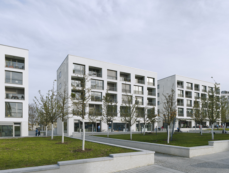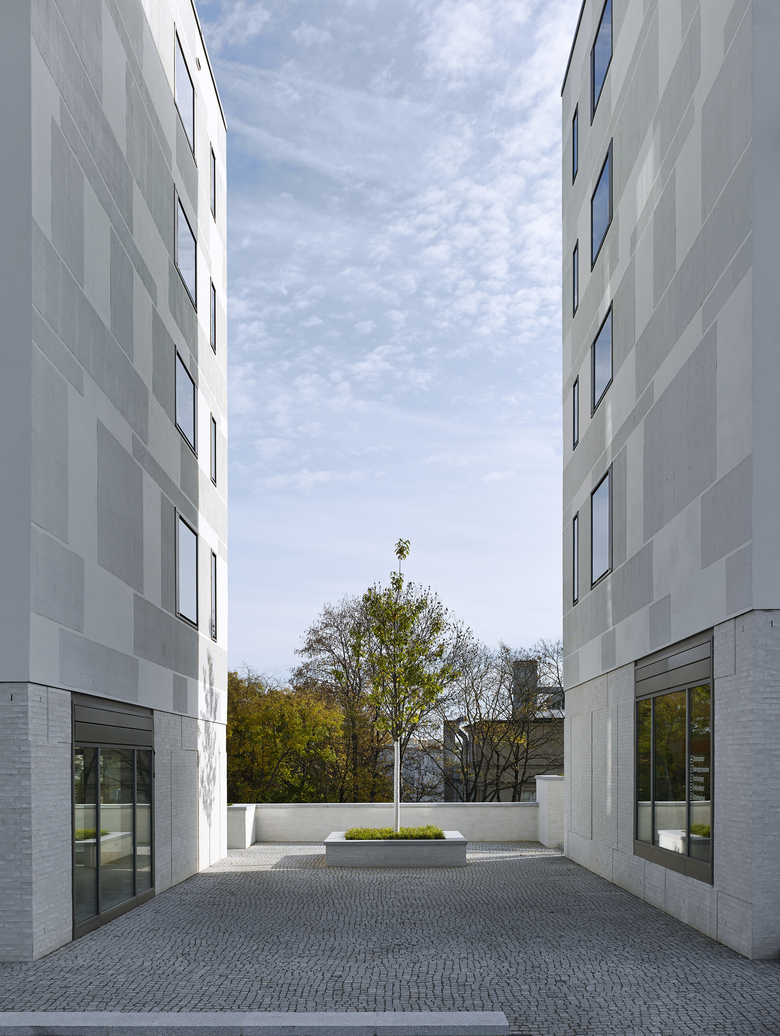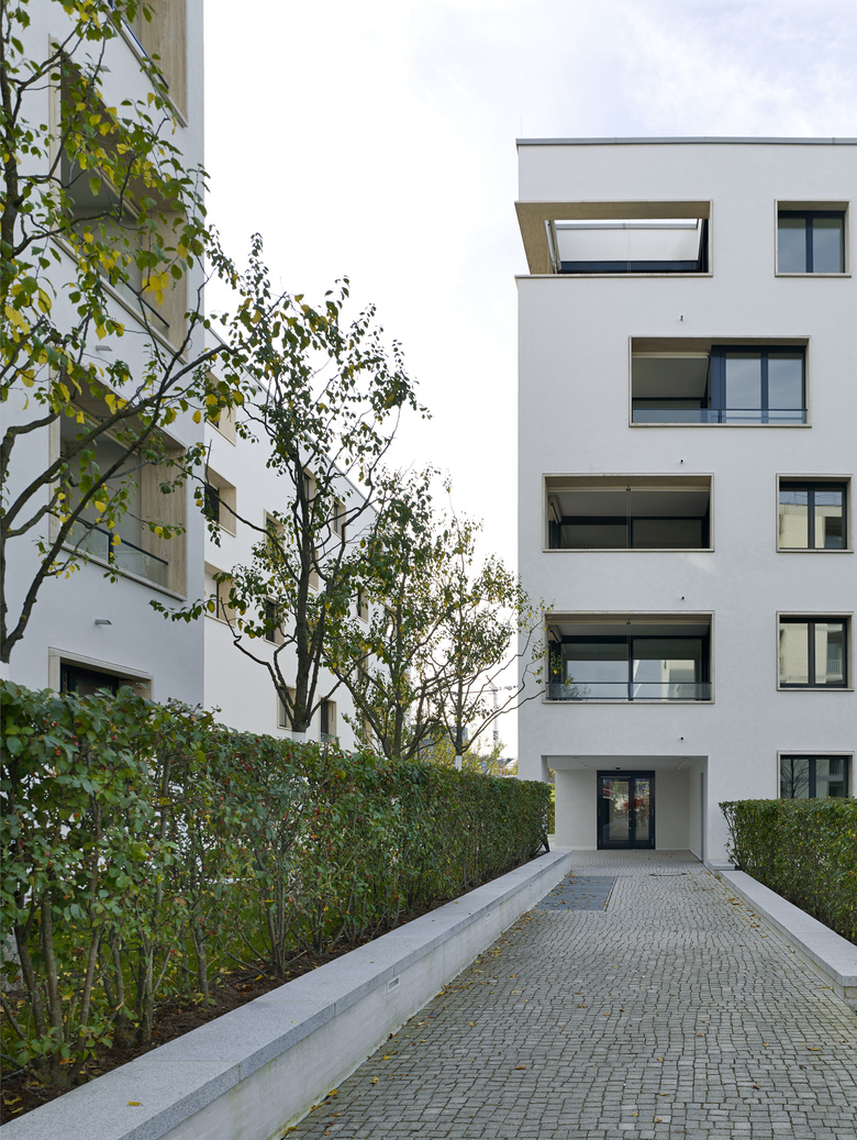 Als „Insel in weiß“ bezeichnete die deutsche Bauzeitung 2014 das auf dem ehemaligen Messegelände erbaute und direkt an den Killesbergpark angrenzende neue Stadtquartier, das neben exklusivem Wohnraum auch Gastronomie, Gewerbe- und Büroflächen, ein Nahversorgungszentrum sowie eine KiTa bietet. Entwickelt wurden die individuellen, architektonischen Konzepte der insgesamt 12 Gebäude, die eine unverkennbare Ähnlichkeit zu der in unmittelbarer Nachbarschaft liegenden Weisenhofsiedlung aufweisen, von den vier international renommierten Architekten Ortner & Ortner, KCAP, Baumschlager Eberle und Chipperfield. Moderne, funktionale Formen und schlichte, unaufgeregte Flächen mit scharfen Kanten schaffen ein homogenes Gesamtbild. Die individuellen, architektonischen Besonderheiten der einzelnen Gebäude finden ihren Ausdruck insbesondere in Baukörper und Fassade. Puristische Baukörper neben höhengestaffelten, mit funktionalen Einschnitten versehenen Baukörpern. Hellgraue Fassaden aus vorgeschlämmtem Klinker grenzen an weiße Kratzputz-Fassaden. Lochfenster changieren mit Panoramafenstern, raumhoher oder besonders breiter Verglasung. Alles andere als monoton wirkt so das einheitliche Gesamtensemble.