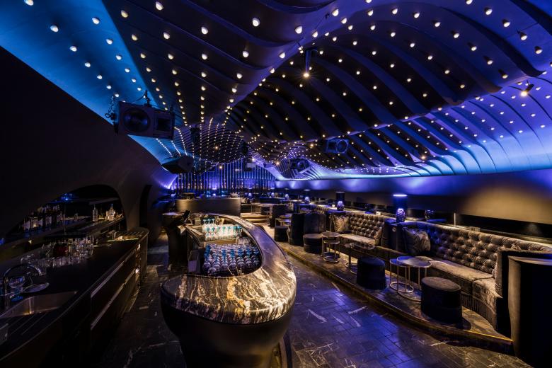 Die Herausforderung des Projektes war es, diese typischen Kellerräume in eine extravagante Welt umzuwandeln. Damit die Gäste des Clubs den Raum nicht als unterirdische Kellergeschoße wahrnehmen, ersetzten wir das typische charakteristische Tonnengewölbe durch eine dynamische wellenförmige Deckenkonstruktion, welche den Raum in eine ungewöhnliche, verrückte und surreale Welt transformiert – man könnte meinen die Decke lebt.