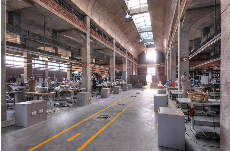 The project aims at creating inward looking spaces around a garden, like traditional cloister, ideal for work in a calm environment. The studios and offices are suspended above the buzz of the production located at the lower floors, getting zenithal light adapted to precision work.