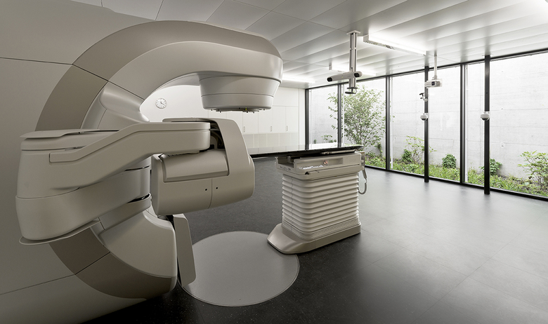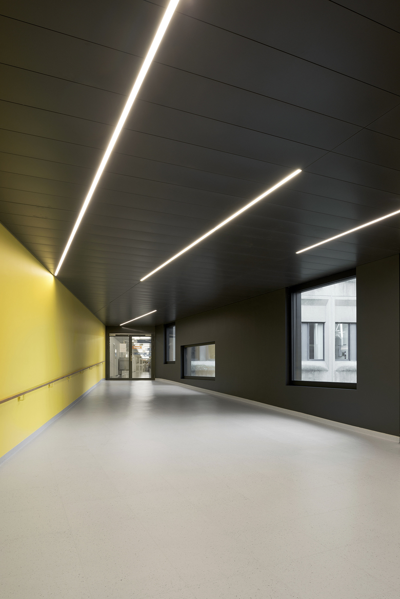 Wie lauten die fünf Wörter, die im Alphabet vor dem Wort Kubus stehen? Kubistin, kubistisch, kubital, Kübler und Kubrick. Das erklärt nichts bis fast alles der Poliklinik mit Ambulatorien. Fünfgeschossiger Neubau. Warte- und Aufenthaltsbereiche um den Lichthof. Behandlungsbereiche entlang der Aussenfassade wie die offene und lichtdurchflutete Dialyseabteilung mit extrem funktionalen und privateren Kojen. Ein Bunker für einen Linearbeschleuniger im Erdgeschoss, dessen eigener Innenhof Bestrahlungen unter Tageslicht ermöglicht. Zwei ambulante Operationssäle mit Tageslicht und einem neuen, personalsparenden Konzept in der Ein-und Ausleitung. Kurze Wege. Dazu viel Freiheit und Flexibilität in der Nutzung. Der Würfel wird umgeben von einer filigranen Fassade sowie einer Hügellandschaft.