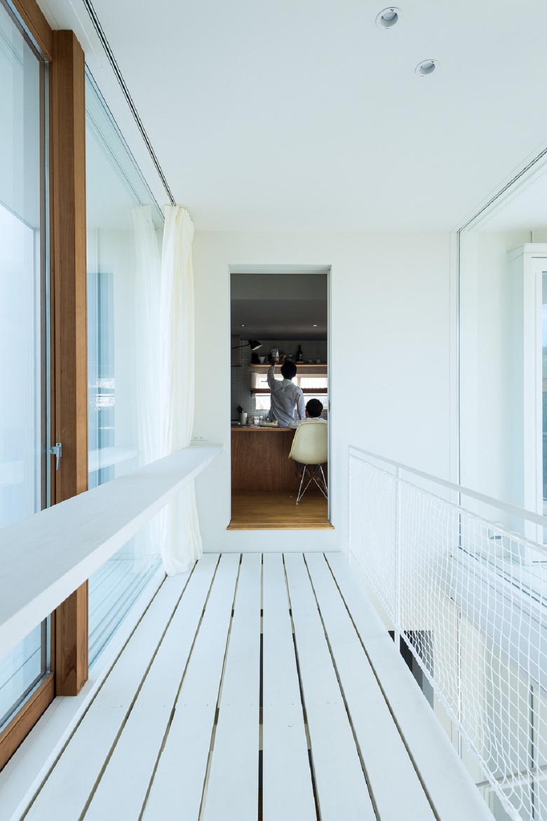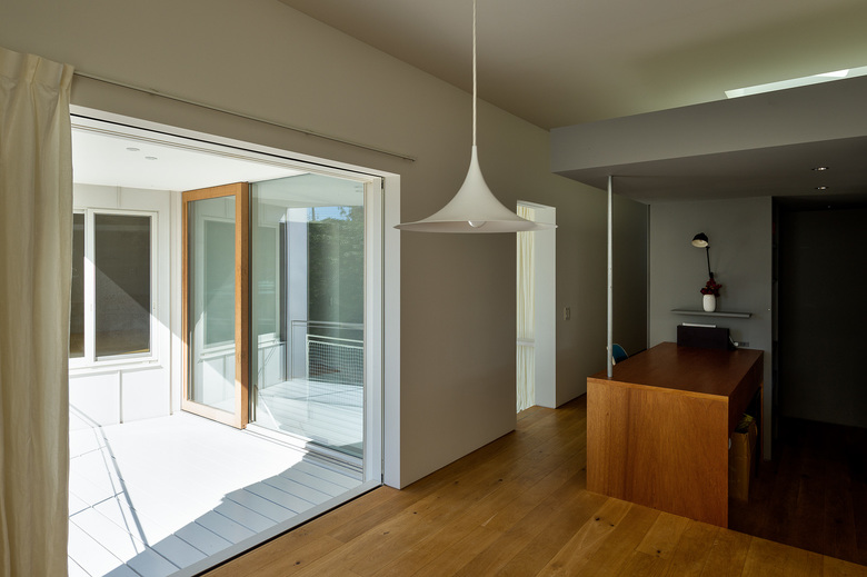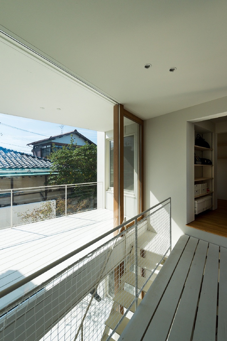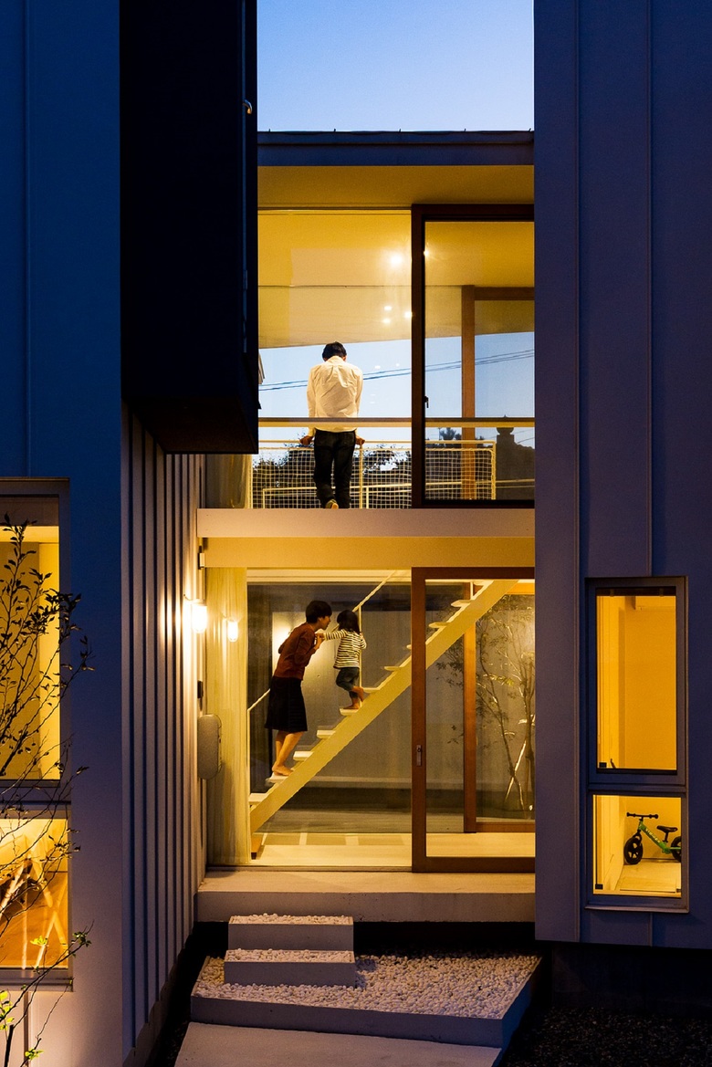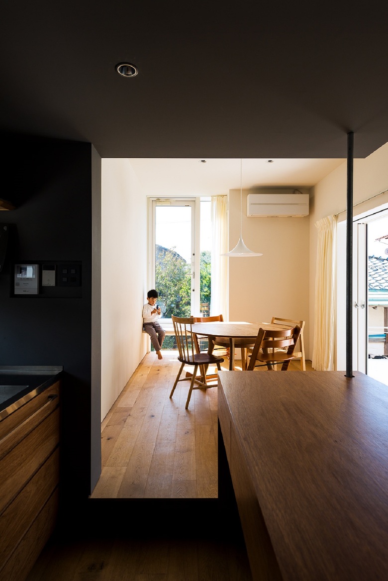 In essence, we constructed two small houses connected with an in between space that is public. We conceptualized the building as a home of the town-a connection between the front road and the back path. In one building, we designed a large flexible LDK space with less strict functions and in the other building, we arranged relatively small rooms with clear functions, such as kid’s room, work space and Japanese style room. When the residents move back and forth between these two buildings, or go up and down the stairs, they travel through this in between space and in a sense, through the town. The house thereby chooses to open life more physically to the town and seeks to bring the town more closer to it, than just a building constructed in a town. The site is an extension of the town and seeps into the everyday life of the residents. As the residents move around the house, they bear witness to town events and seasonal changes, making the house more in tune with its environment.