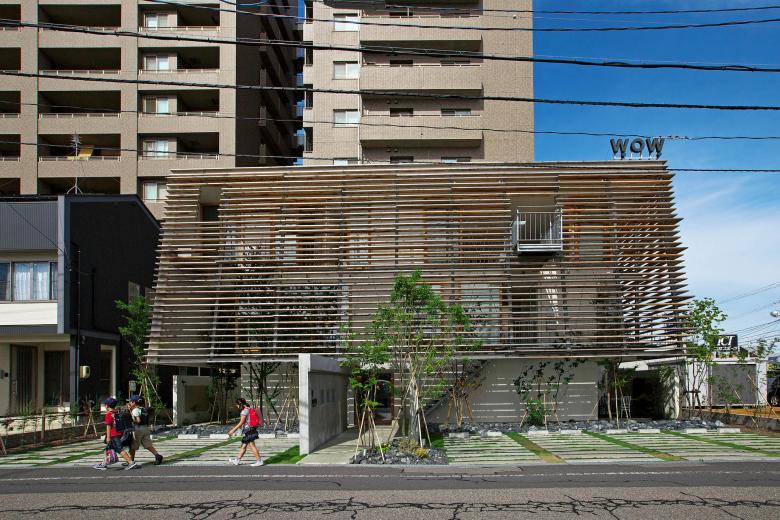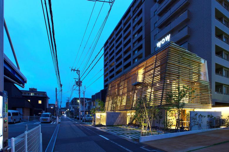 Wow! Sta. is situated in Horinouchi, in the Central Ward of Niigata City - an area where the city center gradually begins to give way to the suburbs. The scenery lining the nearby main road is dominated by large commercial and retail buildings and their accompanying signage. The businesses, houses and multilevel apartments that sprawl out from Niigata Station constitute this typical inner-city area. Located just one street back from the main road with its dazzling lights and the din of the traffic, we find an area that is surprisingly calm, unlit by even street lights. Our site bisects these two vastly different environs, in an area where rules concerning pace and time, scale and ambiance are not clearly defined.