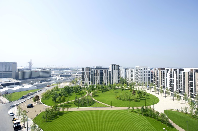 The Stratford City development was initially conceived in 2002 as a development and urban regeneration project on the former Stratford Rail Lands, which are north of Stratford town centre in East London. When London was awarded the 2012 Olympic and Paralympic Games, the East Village was assimilated into the Stratford City master plan. The requirement to host the 2012 Games meant that the development time frame, initially fifteen to twenty years, had to be accelerated to provide accommodation for the 17,000 competitors and team members. While there was considerable pressure to deliver the Village for 2012, the primary focus of the design team was the development of a Post-2012 Legacy Community that would contain residential, retail, office and educational facilities. The East Village lies between the river Lea to the west and the existing residential area of Leyton to the east. The natural characteristics and urban context of these locations have been used as landscape references to inform the design of open spaces including the streetscape.