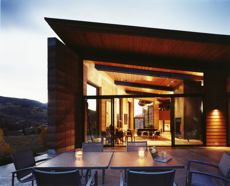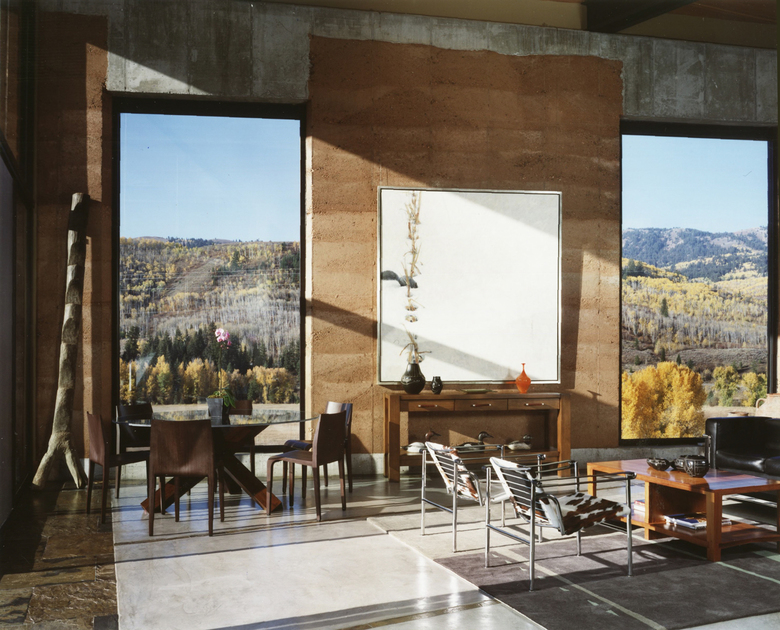 Naturally simple, the TK Pad is settled organically into a reddish-brown butte 10 miles south of Jackson. From its unadorned and earthy materials—most notably the post-tensioned rammed earth walls, patented by the architect and used here for the first time—to its butte-side orientation, the residence is in harmony with its environment for a successful design that won the architects an Award of Excellence in the “Built” category from the Wyoming chapter of the American Institute of Architects.