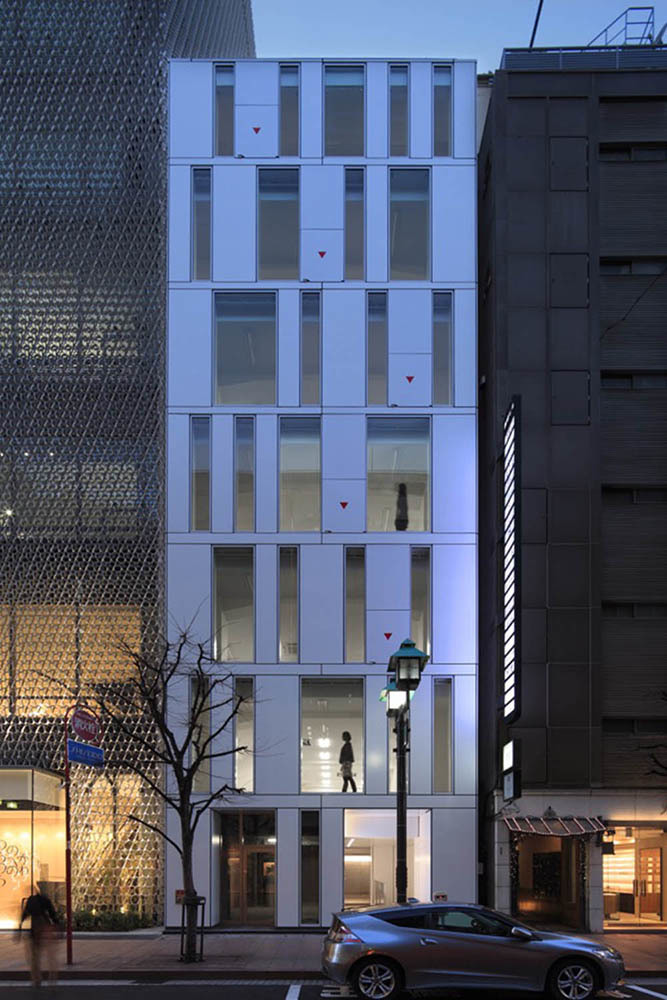"Even if tourists increase, even if fast fashion stores increase, it doesn’t matter because Ginza will always be Ginza.” Starting with Hermes, luxury boutiques continue on down the street through world famous brands such as Louis Vuitton, Cartier, Etro, Chanel and Loewe. Such luxury brands line this elegant street, called “Namaiki street” which this building faces and from which hostesses in Kimonos can be glimpsed seeing off their clients.