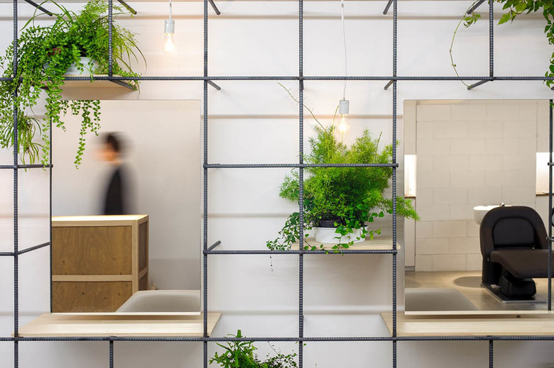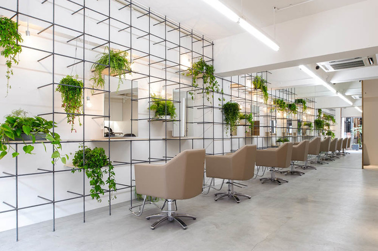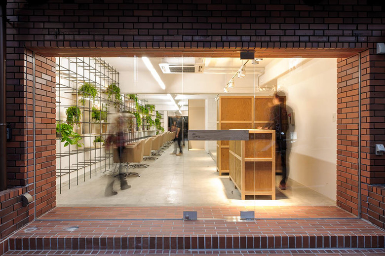 “Familiarity” rather than “newness”, “casual” rather than “ceremonial”, ”foundations” rather than “the finishing”. With this in mind, we selected the materials for this interior. In the area where hair styles are set, reinforcing bars were used to create a lattice work within which were placed plants that are suggestive of hair styles such as curly hair, afros or a beautiful lady of nobility. It’s our desire that when viewed from the street, passersby can feel the openness of the atmosphere such as that of a 3D image of a park.