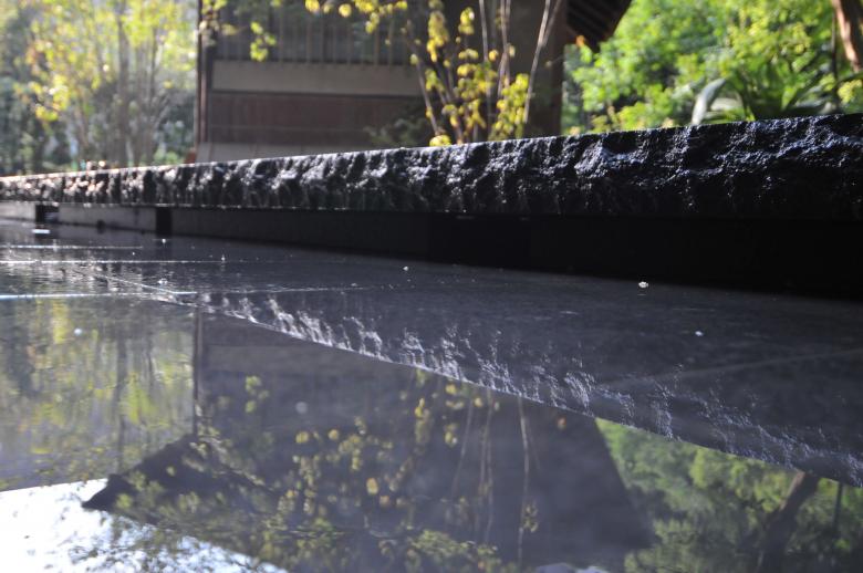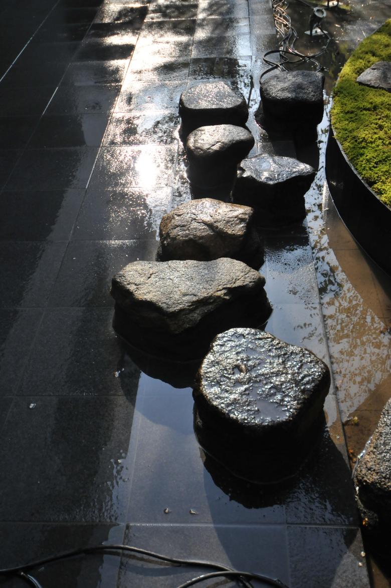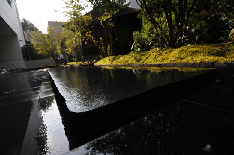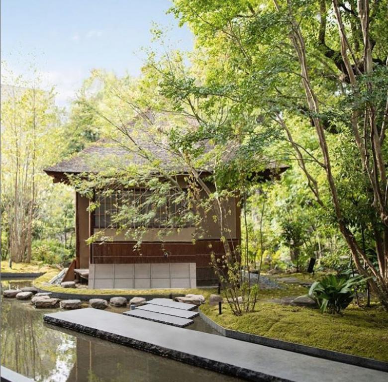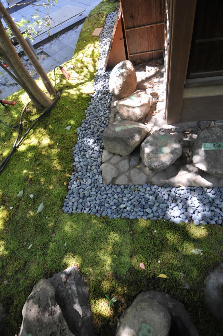 Este proyecto consistió en la renovación de una sección del jardín de la casa de té con el jardín principal de Taikoen, que había sido protegido como Bien Cultural Tangible. Instalamos un elemento acuático para hacer que la casa de té destacara. La piedra-puente de seis metros de largo que se utilizó sobre el elemento acuático está inspirada en la piedra-puente del estanque del jardín principal, que es uno de los principales símbolos del Jardín Taikoen. Hemos plantado árboles de hoja caduca, como arces, alrededor del elemento acuático.