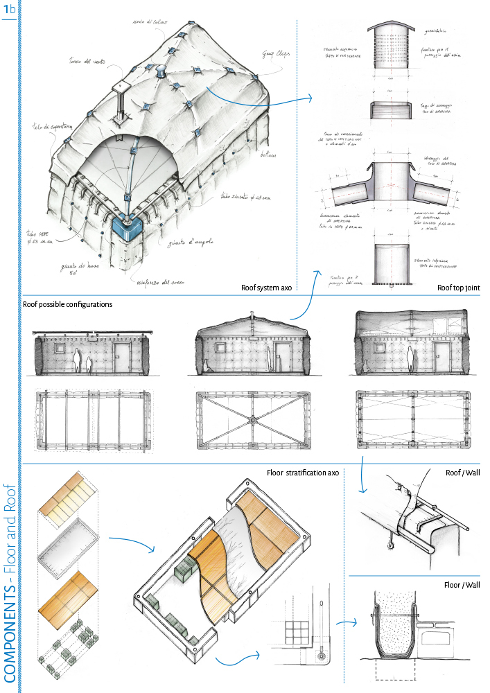 To design a shelter that can improve tent’s performances and efficiency by replacing it after the first emergency phase and that can give an adaptable base on which build a dwelling appropriate to climatic and cultural context as well as to local resource availability has been the main goal of this project.