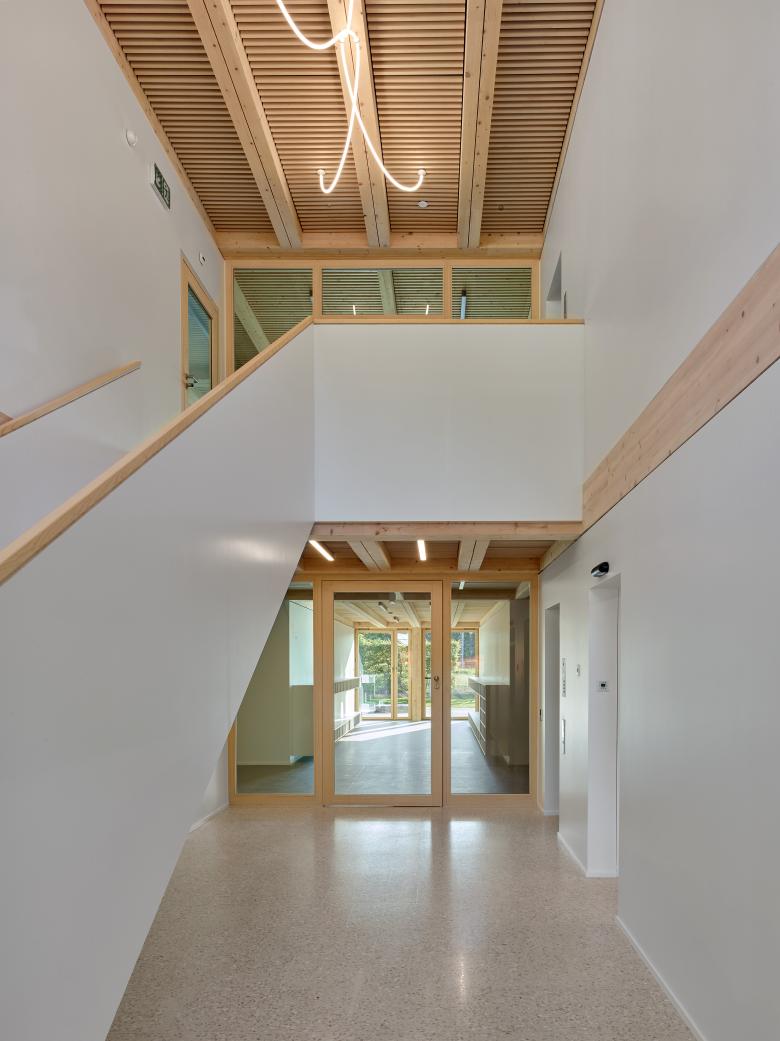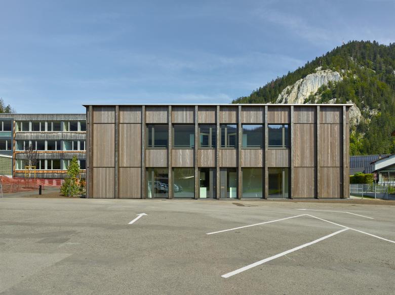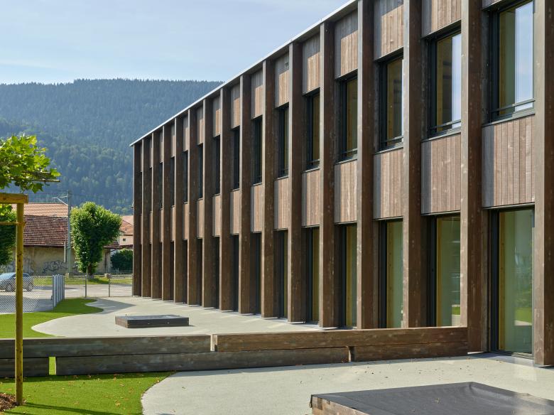 La structure porteuse et le revêtement des façades sont réalisés avec le bois issu des forêts communales.