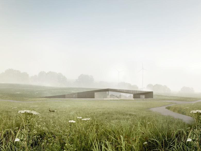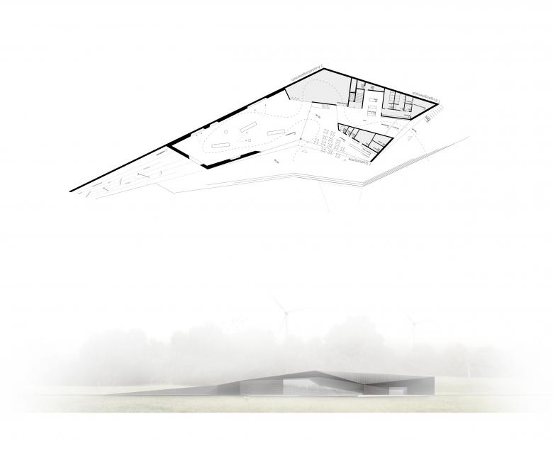 Das Museum zeigt sich als eine Holzkonstruktion, dessen gefaltete Dachlandschaft zeltartig in die Landschaft eingebettet ist. Im Bereich des Panoramafensters hat das Gebäude seinen Hochpunkt. Durch diese Ausprägung entsteht ein spannungsvoller räumlicher Dialog zwischen Museum und Grenze.