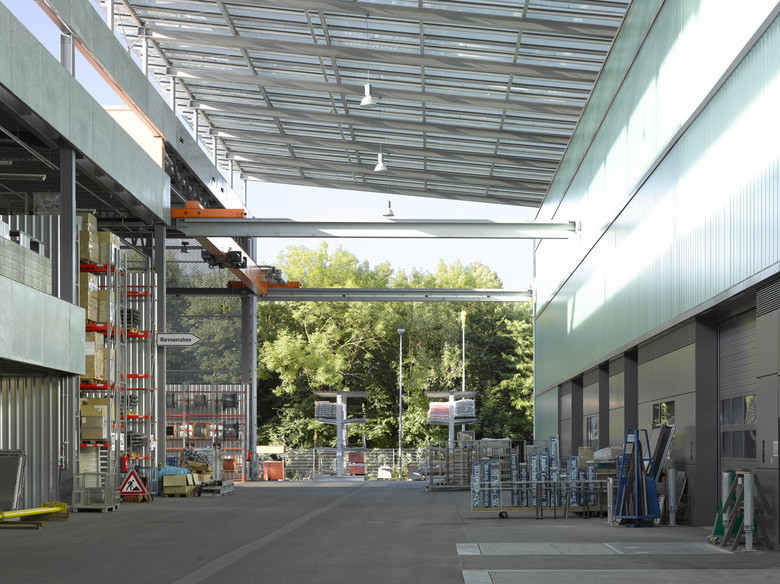 Das neue Betriebszentrum der Landeshauptstadt München soll als technische Infrastruktureinrichtung in seiner funktionalen Gliederung, sowie in seiner Gestaltung beispielgebend für einen Industriebau stehen. Zwei parallele Gebäuderiegel, als kalter und warmer Gebäudeteil ausgeführt, definieren einen durchgehenden glasüberdeckten Hallenraum. Eine Hülle aus perforiertem Leichtmetall fasst die unterschiedlichen Funktionseinheiten zu einem Bauwerk das Offenheit, Dynamik und Wandelbarkeit ausstrahlt. Der Eingang liegt im südöstlichen Riegel und erschließt die Verkehrsleitzentrale, den Verwaltungsbereich mit Besprechungsräumen, die Cafeteria und Werkstätten. Die Parkdecks für Dienst- und Mitarbeiterfahrzeuge sowie die Lagerräume liegen gegenüber im unbeheizten Gebäudeteil. Der glasüberdeckte Hallenraum dazwischen, die sogenannte „Magistrale“ dient dem Be- und Entladen; zwei Stege verbinden die Obergeschosse auf dem kürzesten Weg miteinander. Die Verwendung industriebautypischer, robuster Materialien und Halbzeuge wie Streckmetall, Blech, Glas und Beton werden dem Zweck des Gebäudes als Nutzbau gerecht.