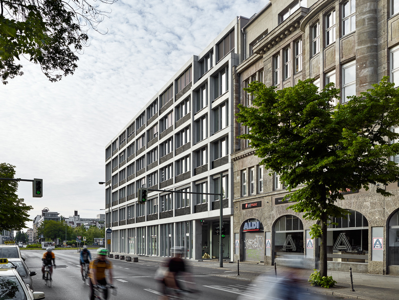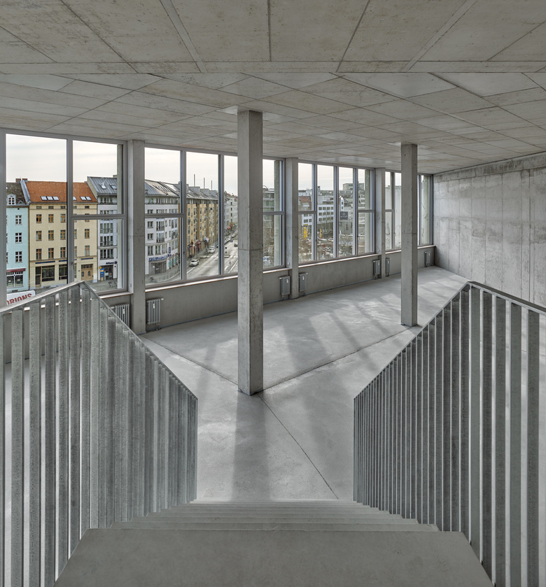 Mehrere Einschnitte im Volumen – der trichterförmige Haupteingang, eine offene „Stadtloggia“ zum Moritzplatz und eine Passage am Übergang zum Elsnerhaus – stellen direkte Wege- und Blickbezüge zum Innenhof her und verknüpfen diesen mit dem Stadtraum. Im Erdgeschoss des Gebäudes sind Gastronomie, ein Ausstellungsraum und eine Galerie angesiedelt. Alle weiteren Flächen im Haus sind modulare, flexibel koppelbare Einheiten, die an verschiedenste Akteure der Kreativbranche wie beispielsweise die „design akademie berlin“, Filmfirmen, Agenturen, Architekturbüros, Design- und Musikstudios vermietet werden.