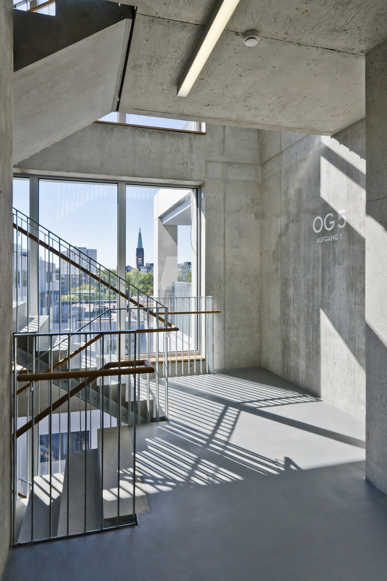 Eine offene, flexible Stahlbeton-Skelettstruktur und einfache, robuste Materialien – mit diesem typischen Loft-Charakter bietet der zweite Bauabschnitt des Aufbau Haus als “veredelter Rohbau” den passenden Rahmen für Nutzer aus der Kreativbranche mit ihren unterschiedlichen Nutzungsanforderungen und individuellen Ausbauwünschen.