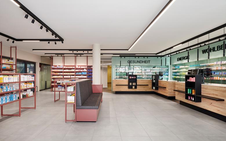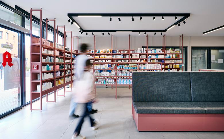 Die Apotheke am Markt in Kelkheim gilt als äußerst kompetente Institution. Die persönliche Nähe zu ihren Kundinnen und Kunden steht bei der Inhaberin Katharina Rack und ihrem Team im Vordergrund. Diese Haltung sollte sich auch in der Neugestaltung der Apotheke ausdrücken. Schwerpunkt des Interior Designs von brandherm + krumrey war daher die Schaffung einer einladenden und vertrauensvollen Atmosphäre. Mit der farbigen Gliederung der einzelnen Funktionsbereiche wurde nicht nur eine schnelle Orientierung ermöglicht, sondern auch ein betont freundliches Ambiente realisiert.