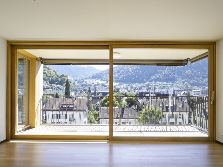 umso erlebbarer durch die jeweils eingeschobene Loggia in der Eckposition des Wohnzimmers. Die Loggia ist seitlich verglast,