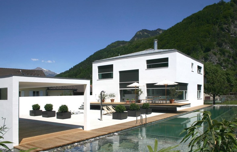 Neubau eines Einfamilienhaus im Dorfzentrum von Trimmis. Neben dem Haupthaus mit Wohnbereich, Schlafbereich (Kinder- und Elterntrakt) gehört ein Aussenbereich mit Sonnenterrasse, Pergola und Bioschwimmteich zum Ensemble.