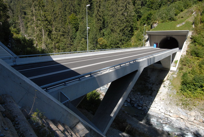 Im Rahmen der Umfahrung Flims wird das Stennatobel zwischen den beiden Tunnels Prau Pulté und Flimserstein auf 25m Höhe über dem Flembach überbrückt werden. Wegen der kleinen Pfeilhöhe von 1/8 der Spannweite zwischen den Kämpferfundamenten erlaubt es, dass die Fundation in die Portalbereiche integriert und dafür nicht zusätzliche Hangeinschnitte erforderlich wurden. Vor dem Einbau von Abdichtung und Belag wurde der ca. 270 Tonnen schwere Messerschild über die im Rohbau fertiggestellte Brücke verschoben, mit dem nach dem Tunnel Prau Pulté noch die Lockermaterialstrecke des Tunnels Flimserstein aufgefahren werden sollte.
