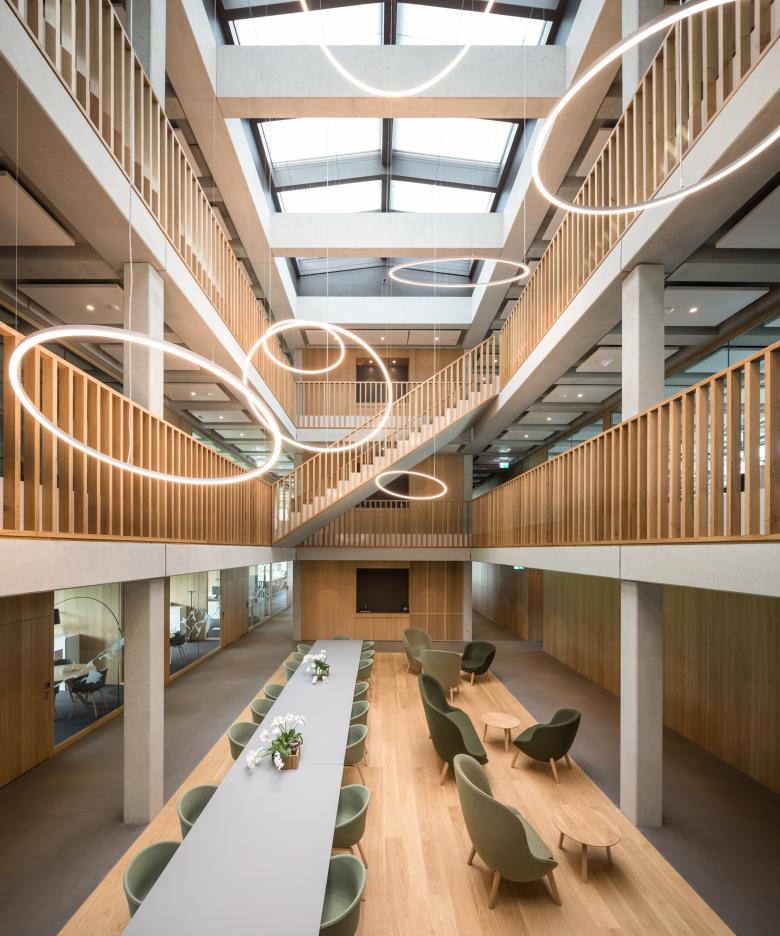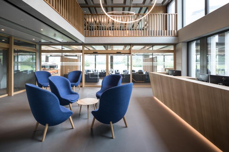 Als 2-Mann Startup für Präzisionslasermesstechnik gestartet, benötigte Oblamatik ein neues Kompetenzzentrum Wasser. Im Gewerbeareal Rossboden in Chur entstand ein 4-geschossiger Neubau, der den Unternehmensgrundsatz „Wir verbessern keine bestehenden Technologien, wir suchen und finden neue Lösungen.“ widerspiegelt. Heute ist das Gebäude der Hauptsitz der Viega Schweiz AG. Das multifunktionale Innovations- und Kompetenzzentrum vereint unter einem Dach Büro-, Labor-, Lager- und Produktionsbereiche für derzeit rund 70 und später 100 Mitarbeiter. Der offenen und innovativen Unternehmenskultur muss baulich und technisch Rechnung getragen werden. Ausgehend vom Herz des Gebäudes, dem „Thinktank“, Ort für Kommunikation, Interaktion und Kreativität entwickelt sich eine flexible Arbeitswelt mit innovativem Layout. Die Fassade spiegelt stringent das vom Programm gegebene Grundraster wieder. Selbstredend handelt es sich um ein MINERGIE-P Haus.