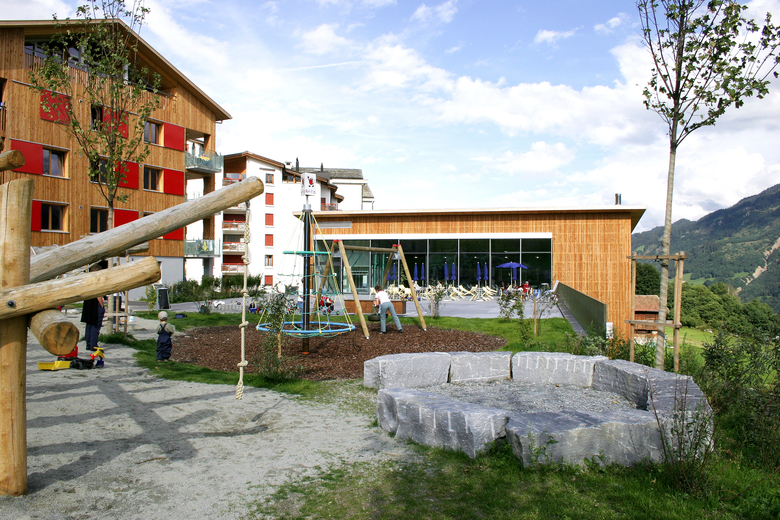 Der architektonische Lösungsansatz besteht in der verbindenden Einheit zwischen der grossvolumigen Nachbarüberbauung im Osten sowie den Kleinstrukturen im Westen. Die Wohnhäuser (Minergiebauweise) formen dabei eine dörfliche Einheit während das Gemeinschaftshaus einen Abschluss gegen Osten und Süden bildet. Der Dorfplatz im Zentrum der Anlage fasst die einzelnen Bauten zusammen. Die Wohnhäuser folgen dem Stil der in der Umgebung von Disentis oft anzutreffenden Walserhäuser. Sie werden durch ein zentral gelegenes Treppenhaus erschlossen an dem links und rechts die Wohneinheiten anschliessen.